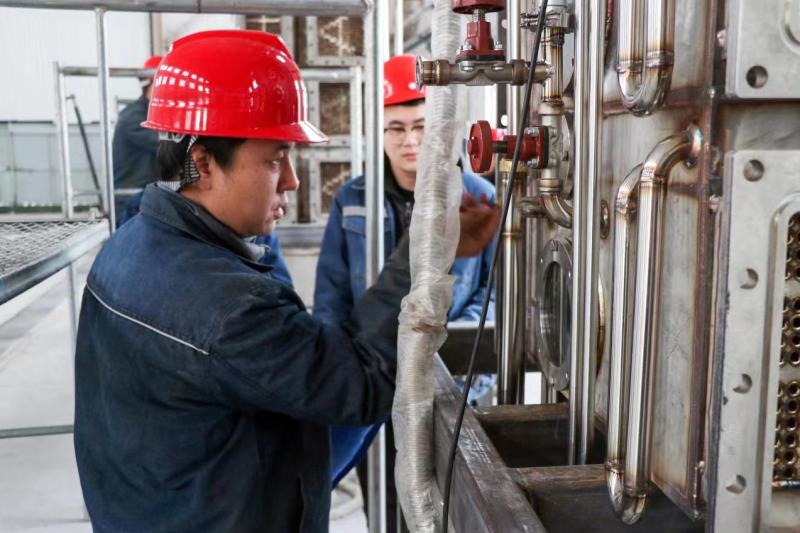 富龍供熱技術(shù)公司總經(jīng)理方豪在車間試驗新技術(shù)