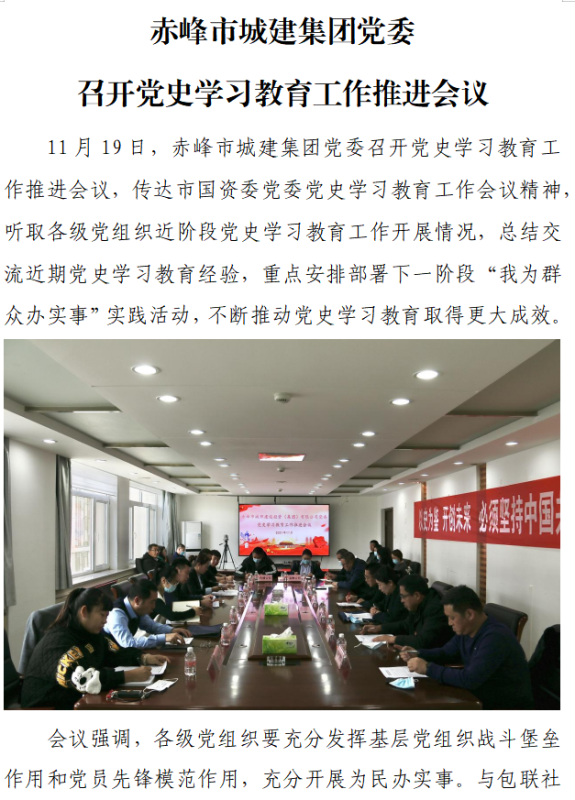 赤峰市城建集團(tuán)黨委 召開黨史學(xué)習(xí)教育工作推進(jìn)會(huì)議