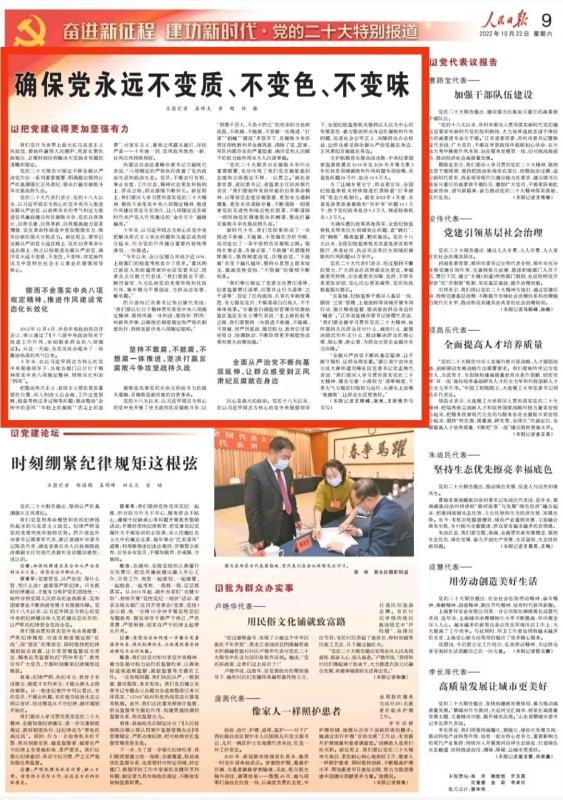 黨的二十大代表們表示,黨的十八大以來,以習(xí)近平同志為核心的黨中央深入推進全面從嚴(yán)治黨,以前所未有的勇氣和定力推進黨風(fēng)廉政建設(shè)和反腐敗斗爭,黨的自我凈化、自我完善、自我革新、自我提高能力顯著增強,黨在革命性鍛造中更加堅強有力,煥發(fā)出新的強大生機活力。新征程上,要牢記全面從嚴(yán)治黨永遠在路上,黨的自我革命永遠在路上,持之以恒推進全面從嚴(yán)治黨,確保黨永遠不變質(zhì)、不變色、不變味,使黨始終成為中國特色社會主義事業(yè)的堅強領(lǐng)導(dǎo)核心。