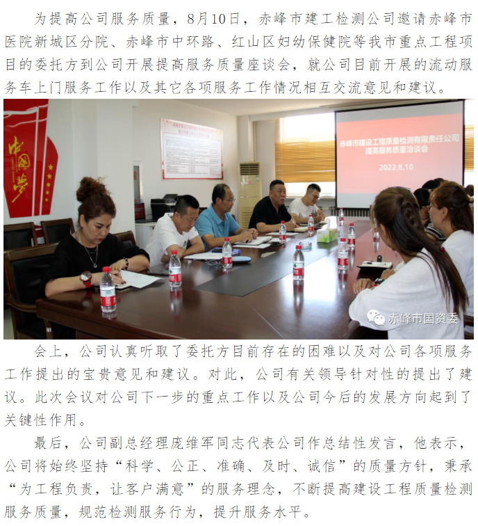 赤峰市建設(shè)工程質(zhì)量檢測有限責(zé)任公司與委托方召開提高服務(wù)質(zhì)量座談會
