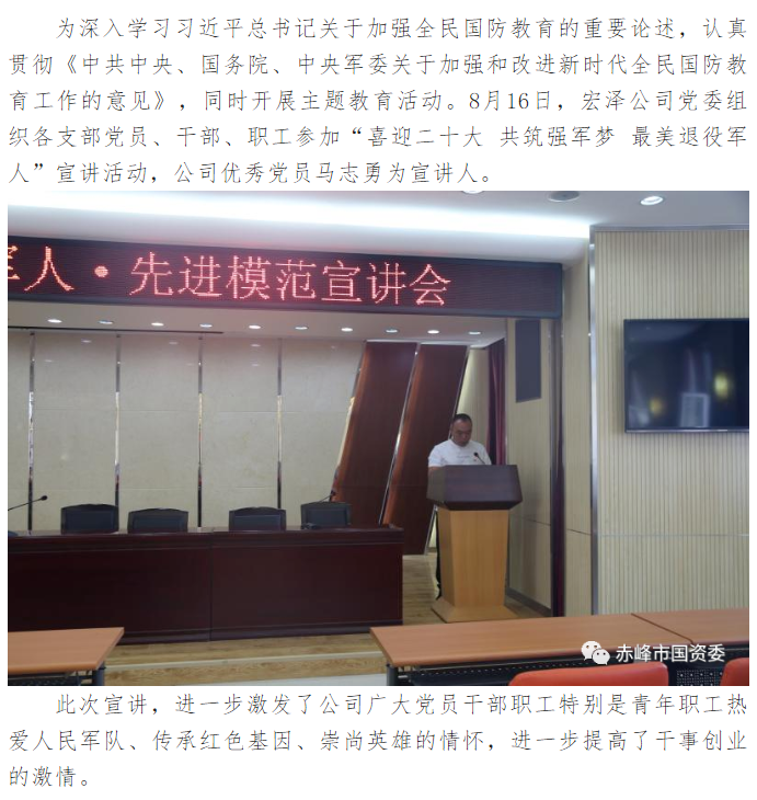 赤峰市宏澤供水有限責任公司舉辦“喜迎二十大 共筑強軍夢 最美退役軍人”宣講活動