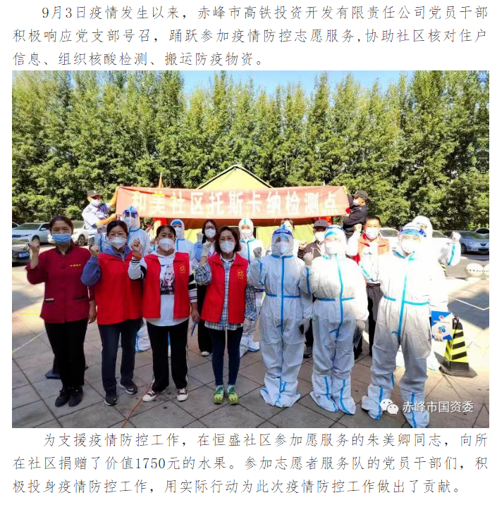 赤峰市高鐵投資開發(fā)有限責(zé)任公司 抗疫凸顯責(zé)任