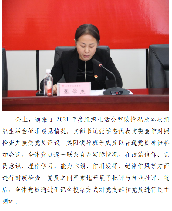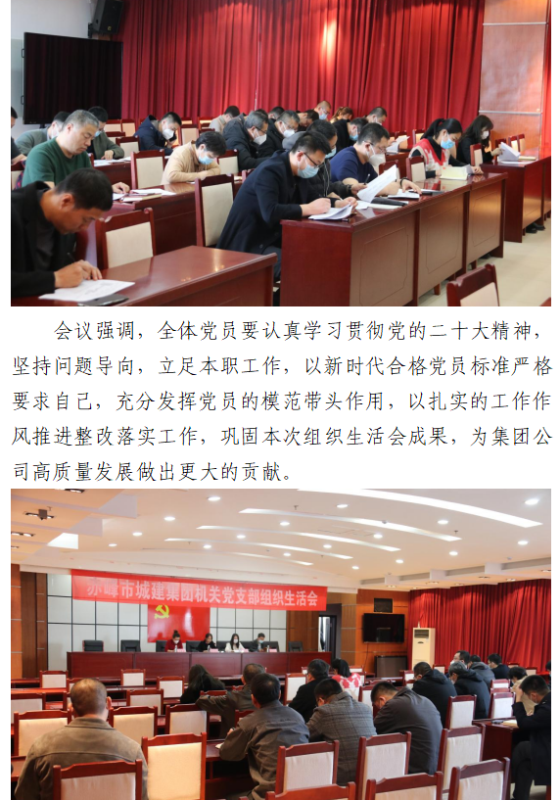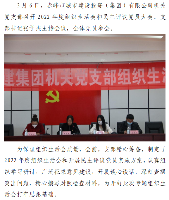 赤峰市城市建設投資(集團)有限公司 機關黨支部召開2022年度組織生活會 和民主評議黨員大會